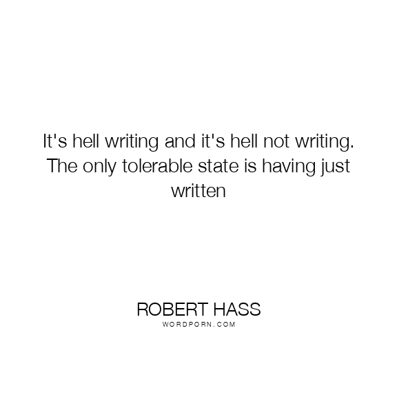 It's hell writing and it's hell not writing. The only tolerable state is having just written