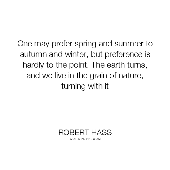 One may prefer spring and summer to autumn and winter, but preference is hardly to the point. The earth turns, and we live in the grain of nature, turning with it