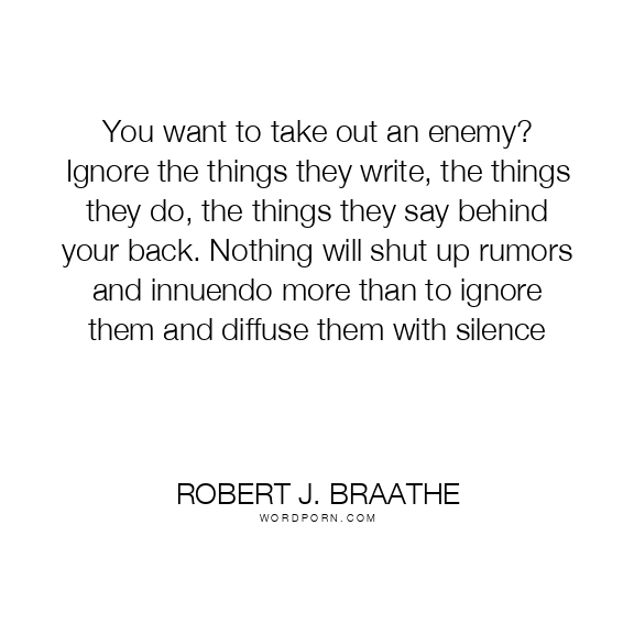 You want to take out an enemy? Ignore the things they write, the things they do, the things they say behind your back. Nothing will shut up rumors and innuendo more than to ignore them and diffuse them with silence