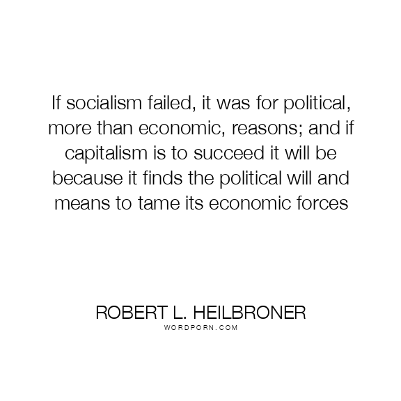 If socialism failed, it was for political, more than economic, reasons; and if capitalism is to succeed it will be because it finds the political will and means to tame its economic forces