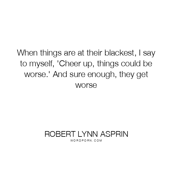 Copy Image When things are at their blackest, I say to myself, 'Cheer up, things could be worse.' And sure enough, they get worse Moms Typewriter A A SAVE THIS IMAGE