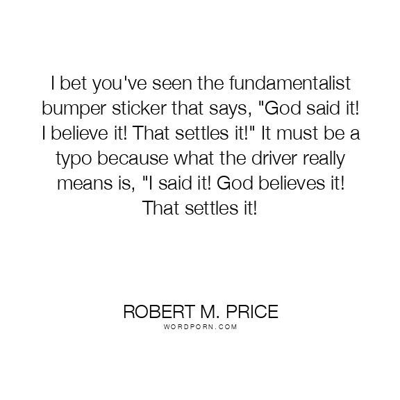 I bet you've seen the fundamentalist bumper sticker that says, "God said it! I believe it! That settles it!" It must be a typo because what the driver really means is, "I said it! God believes it! That settles it!