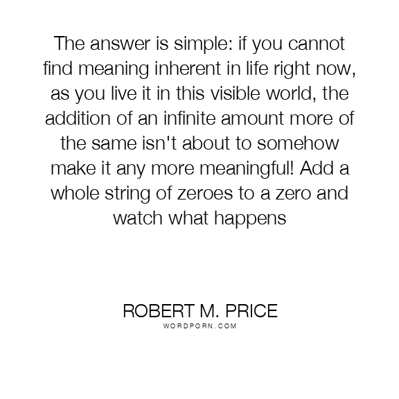 The answer is simple: if you cannot find meaning inherent in life right now, as you live it in this visible world, the addition of an infinite amount more of the same isn't about to somehow make it any more meaningful! Add a whole string of zeroes to a zero and watch what happens