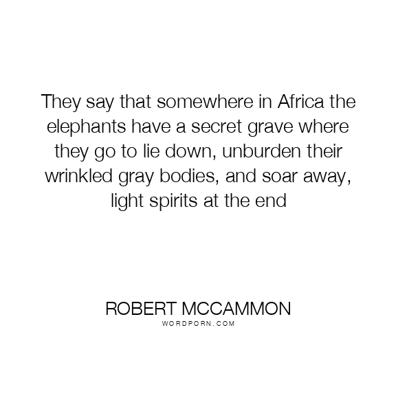 They say that somewhere in Africa the elephants have a secret grave where they go to lie down, unburden their wrinkled gray bodies, and soar away, light spirits at the end