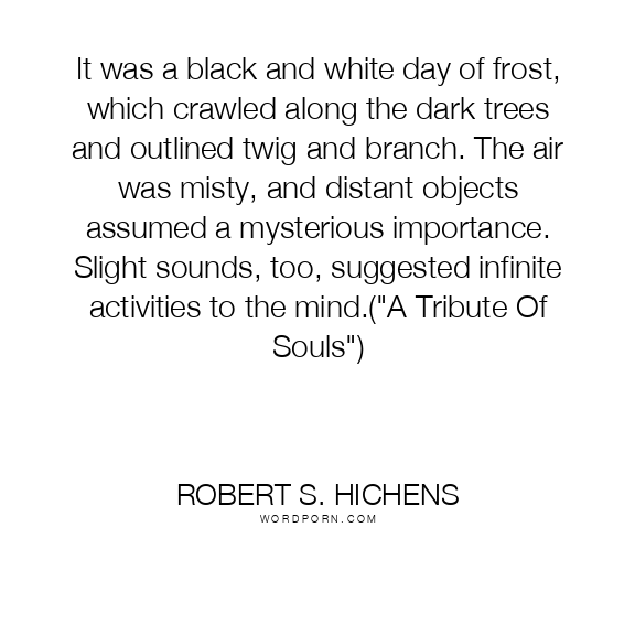 It was a black and white day of frost, which crawled along the dark trees and outlined twig and branch. The air was misty, and distant objects assumed a mysterious importance. Slight sounds, too, suggested infinite activities to the mind.("A Tribute Of Souls")