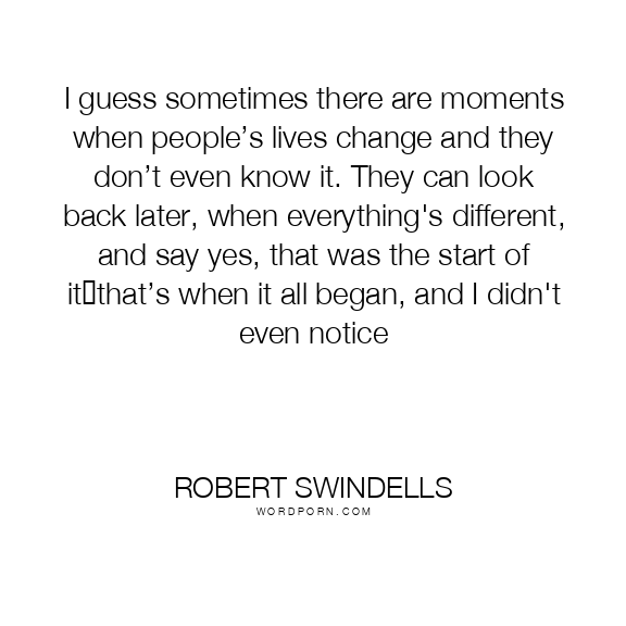 I guess sometimes there are moments when people’s lives change and they don’t even know it. They can look back later, when everything's different, and say yes, that was the start of it―that’s when it all began, and I didn't even notice