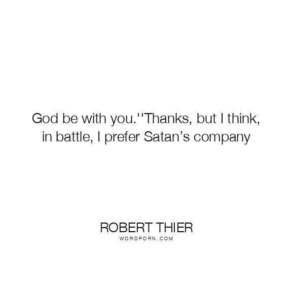 God be with you.''Thanks, but I think, in battle, I prefer Satan’s company