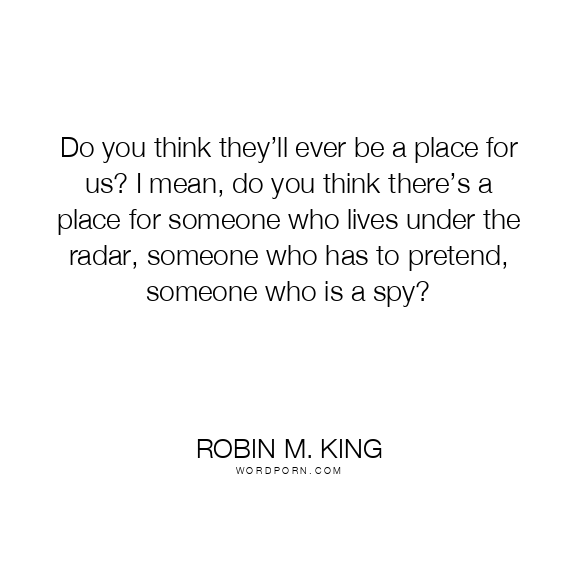 Copy Image Do you think they’ll ever be a place for us? I mean, do you think there’s a place for someone who lives under the radar, someone who has to pretend, someone who is a spy? Moms Typewriter A A SAVE THIS IMAGE