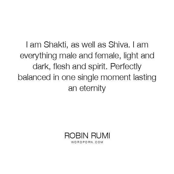 I am Shakti, as well as Shiva. I am everything male and female, light and dark, flesh and spirit. Perfectly balanced in one single moment lasting an eternity