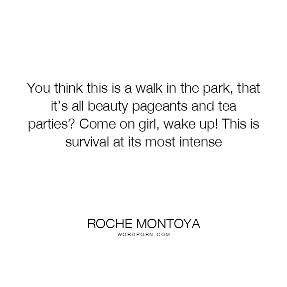 You think this is a walk in the park, that it’s all beauty pageants and tea parties? Come on girl, wake up! This is survival at its most intense