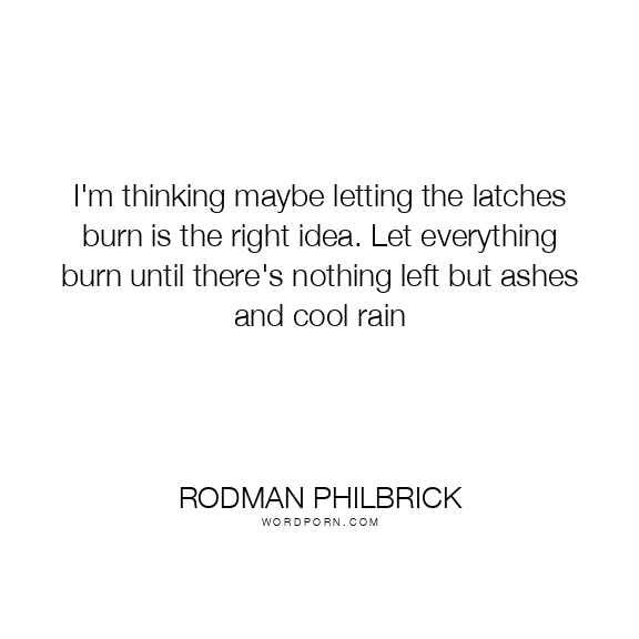 I'm thinking maybe letting the latches burn is the right idea. Let everything burn until there's nothing left but ashes and cool rain