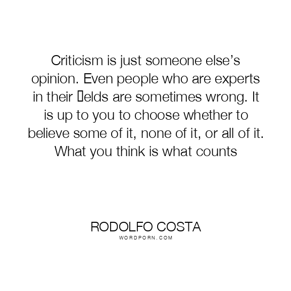 Criticism is just someone else’s opinion. Even people who are experts in their fields are sometimes wrong. It is up to you to choose whether to believe some of it, none of it, or all of it. What you think is what counts
