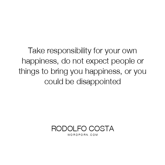 Take responsibility for your own happiness, do not expect people or things to bring you happiness, or you could be disappointed