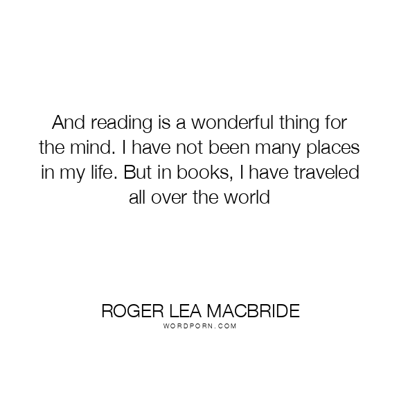 And reading is a wonderful thing for the mind. I have not been many places in my life. But in books, I have traveled all over the world