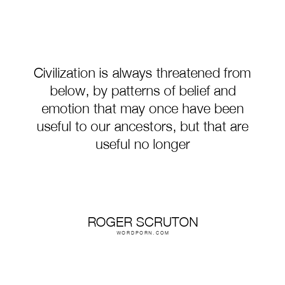 Civilization is always threatened from below, by patterns of belief and emotion that may once have been useful to our ancestors, but that are useful no longer