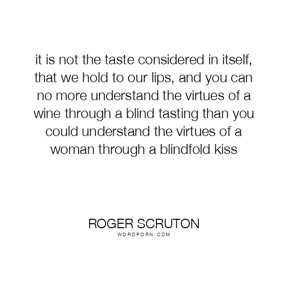 it is not the taste considered in itself, that we hold to our lips, and you can no more understand the virtues of a wine through a blind tasting than you could understand the virtues of a woman through a blindfold kiss