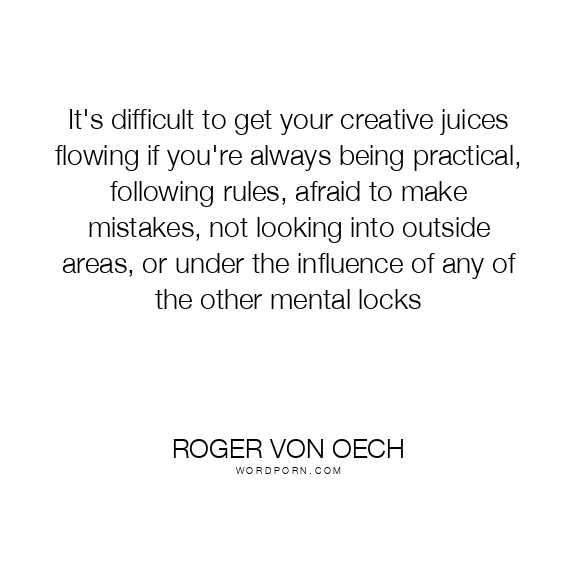 It's difficult to get your creative juices flowing if you're always being practical, following rules, afraid to make mistakes, not looking into outside areas, or under the influence of any of the other mental locks