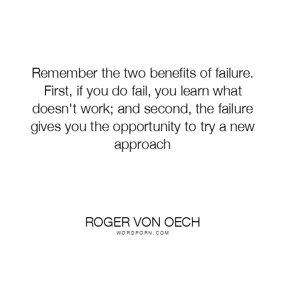 Remember the two benefits of failure. First, if you do fail, you learn what doesn't work; and second, the failure gives you the opportunity to try a new approach