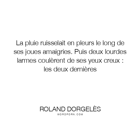 Copy Image La pluie ruisselait en pleurs le long de ses joues amaigries. Puis deux lourdes larmes coulèrent de ses yeux creux : les deux dernières Moms Typewriter A A SAVE THIS IMAGE