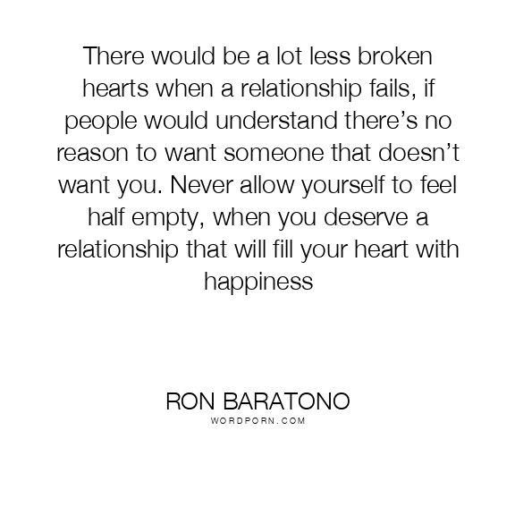 There would be a lot less broken hearts when a relationship fails, if people would understand there’s no reason to want someone that doesn’t want you. Never allow yourself to feel half empty, when you deserve a relationship that will fill your heart with happiness