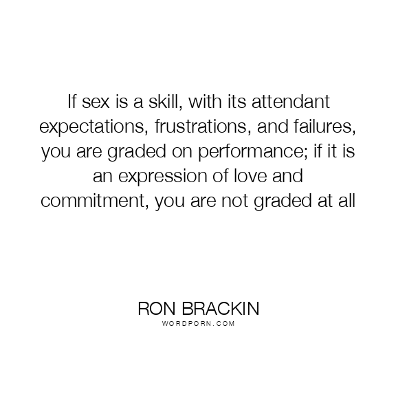 If sex is a skill, with its attendant expectations, frustrations, and failures, you are graded on performance; if it is an expression of love and commitment, you are not graded at all