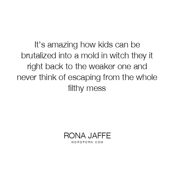 It's amazing how kids can be brutalized into a mold in witch they it right back to the weaker one and never think of escaping from the whole filthy mess