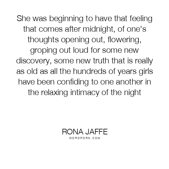She was beginning to have that feeling that comes after midnight, of one's thoughts opening out, flowering, groping out loud for some new discovery, some new truth that is really as old as all the hundreds of years girls have been confiding to one another in the relaxing intimacy of the night
