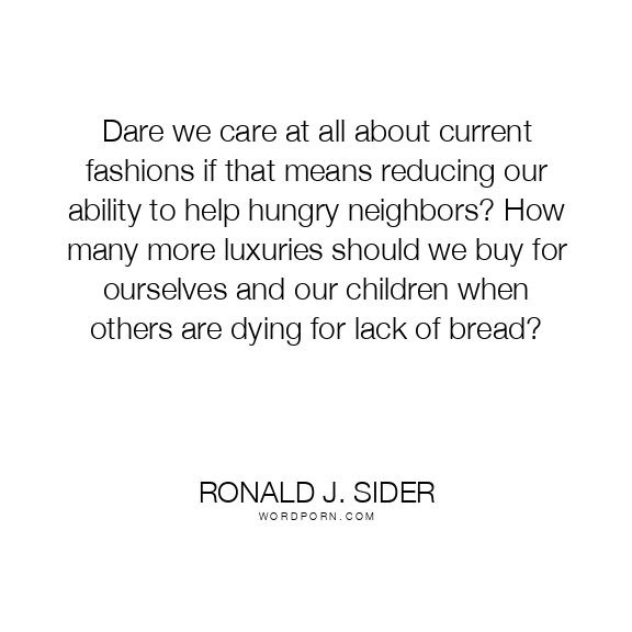 Dare we care at all about current fashions if that means reducing our ability to help hungry neighbors? How many more luxuries should we buy for ourselves and our children when others are dying for lack of bread?