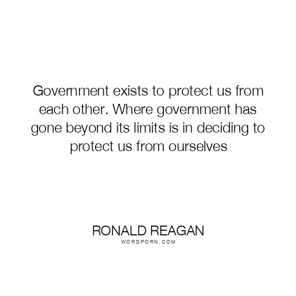 Government exists to protect us from each other. Where government has gone beyond its limits is in deciding to protect us from ourselves