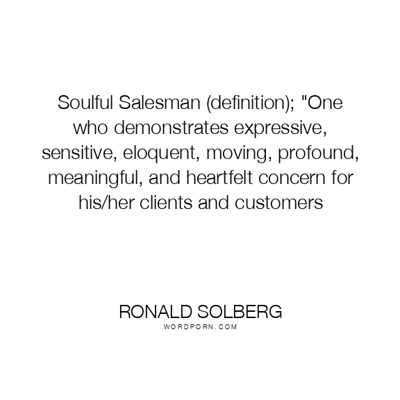 Soulful Salesman (definition); "One who demonstrates expressive, sensitive, eloquent, moving, profound, meaningful, and heartfelt concern for his/her clients and customers