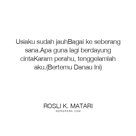 Copy Image Usiaku sudah jauhBagai ke seberang sana.Apa guna lagi berdayung cintaKaram perahu, tenggelamlah aku.(Bertemu Danau Ini) Moms Typewriter A A SAVE THIS IMAGE