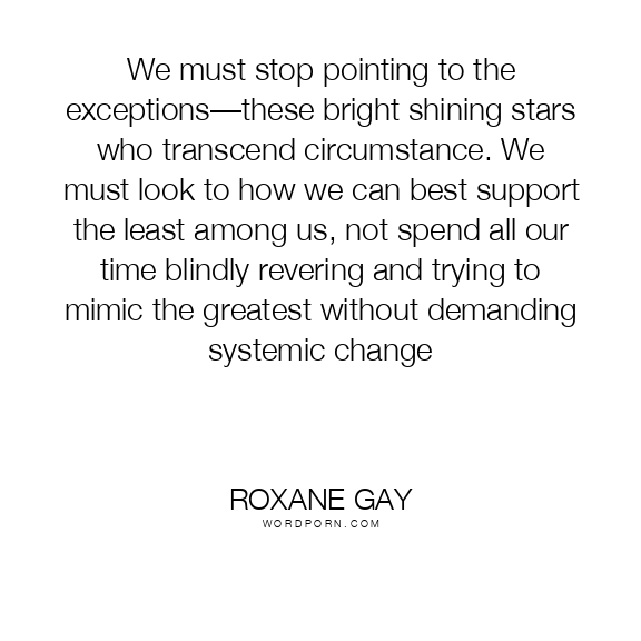 We must stop pointing to the exceptions—these bright shining stars who transcend circumstance. We must look to how we can best support the least among us, not spend all our time blindly revering and trying to mimic the greatest without demanding systemic change
