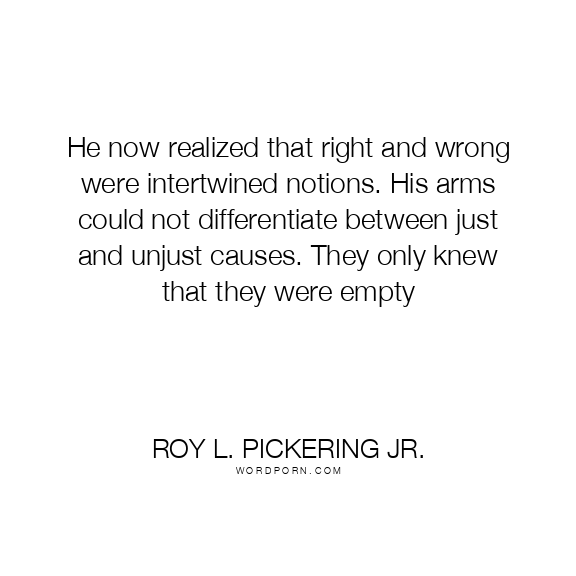 He now realized that right and wrong were intertwined notions. His arms could not differentiate between just and unjust causes. They only knew that they were empty