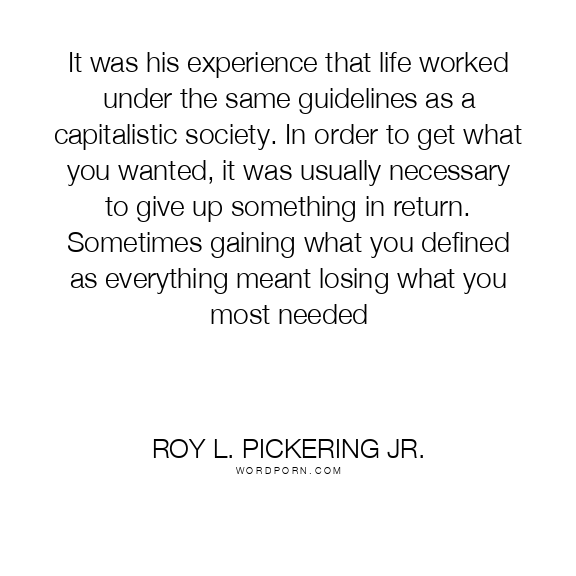 It was his experience that life worked under the same guidelines as a capitalistic society. In order to get what you wanted, it was usually necessary to give up something in return. Sometimes gaining what you defined as everything meant losing what you most needed