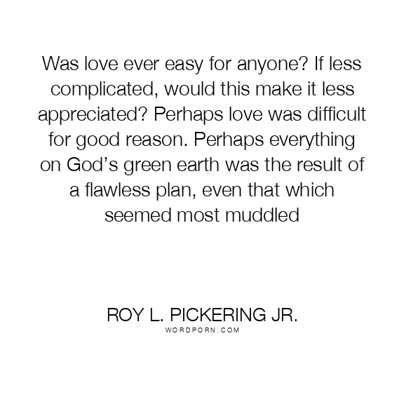 Was love ever easy for anyone? If less complicated, would this make it less appreciated? Perhaps love was difficult for good reason. Perhaps everything on God’s green earth was the result of a flawless plan, even that which seemed most muddled