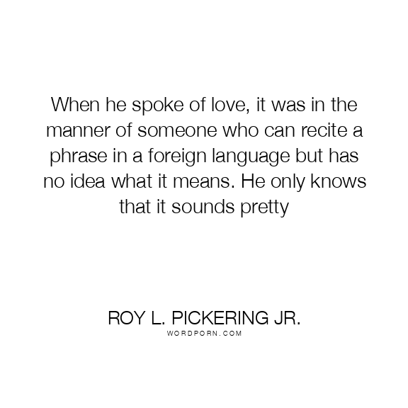 When he spoke of love, it was in the manner of someone who can recite a phrase in a foreign language but has no idea what it means. He only knows that it sounds pretty