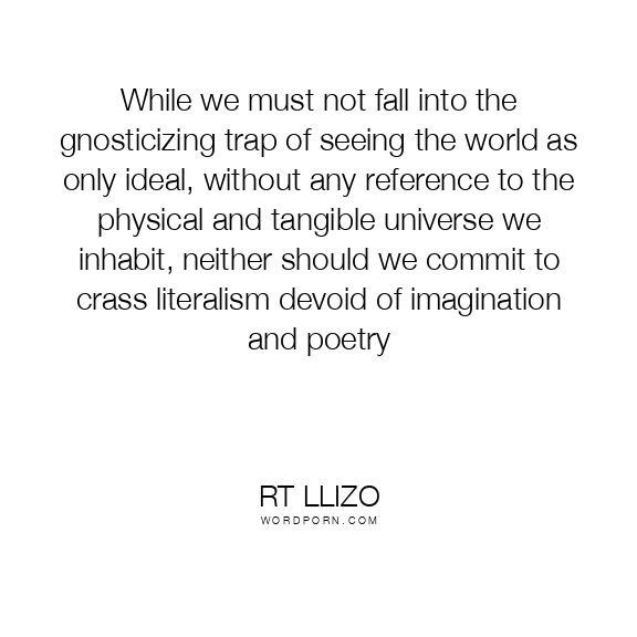 While we must not fall into the gnosticizing trap of seeing the world as only ideal, without any reference to the physical and tangible universe we inhabit, neither should we commit to crass literalism devoid of imagination and poetry
