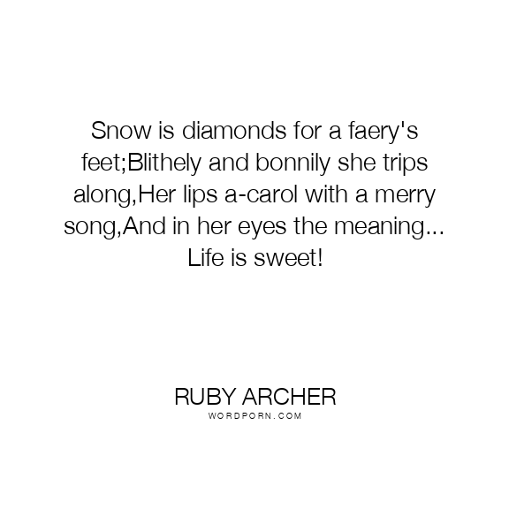 Copy Image Snow is diamonds for a faery's feet;Blithely and bonnily she trips along,Her lips a-carol with a merry song,And in her eyes the meaning... Life is sweet! Moms Typewriter A A SAVE THIS IMAGE