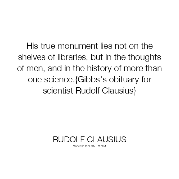 His true monument lies not on the shelves of libraries, but in the thoughts of men, and in the history of more than one science.{Gibbs's obituary for scientist Rudolf Clausius}