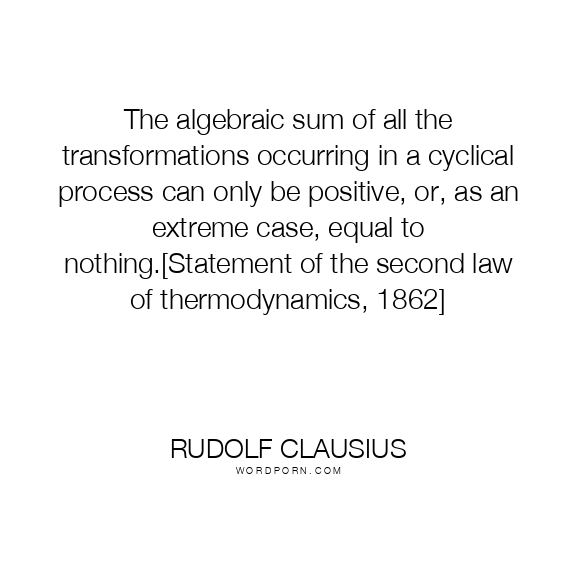 The algebraic sum of all the transformations occurring in a cyclical process can only be positive, or, as an extreme case, equal to nothing.[Statement of the second law of thermodynamics, 1862]