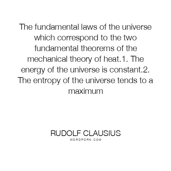 The fundamental laws of the universe which correspond to the two fundamental theorems of the mechanical theory of heat.1. The energy of the universe is constant.2. The entropy of the universe tends to a maximum