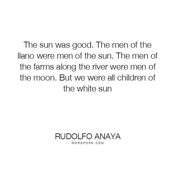 The sun was good. The men of the llano were men of the sun. The men of the farms along the river were men of the moon. But we were all children of the white sun