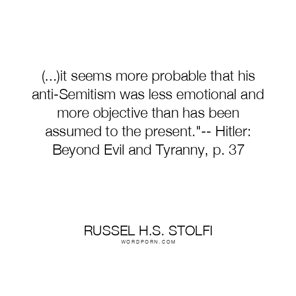 (...)it seems more probable that his anti-Semitism was less emotional and more objective than has been assumed to the present."-- Hitler: Beyond Evil and Tyranny, p. 37