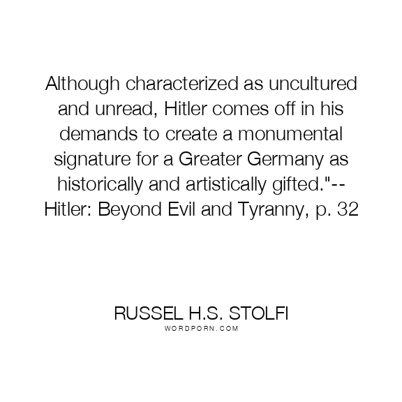 Russel H.S. Stolfi quote. Although characterized as uncultured and unread, Hitler comes off in his demands to create a monumental signature for a Greater Germany as historically and artistically gifted.
