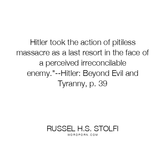 Russel H.S. Stolfi quote. Hitler took the action of pitiless massacre as a last resort in the face of a perceived irreconcilable enemy.