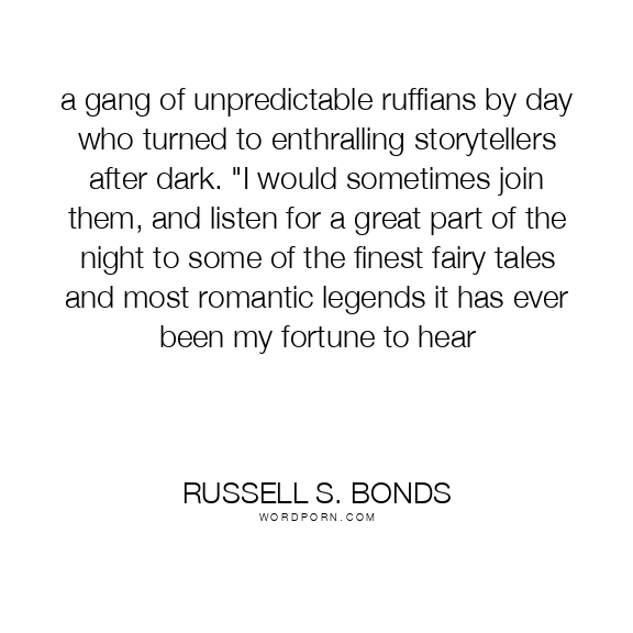 a gang of unpredictable ruffians by day who turned to enthralling storytellers after dark. "I would sometimes join them, and listen for a great part of the night to some of the finest fairy tales and most romantic legends it has ever been my fortune to hear