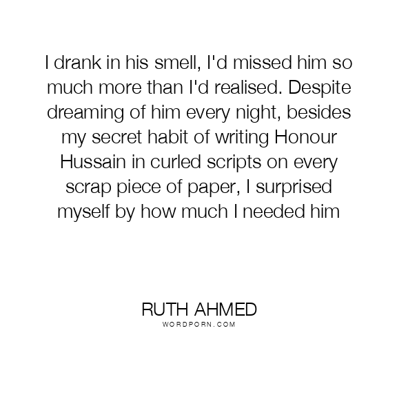 I drank in his smell, I'd missed him so much more than I'd realised. Despite dreaming of him every night, besides my secret habit of writing Honour Hussain in curled scripts on every scrap piece of paper, I surprised myself by how much I needed him
