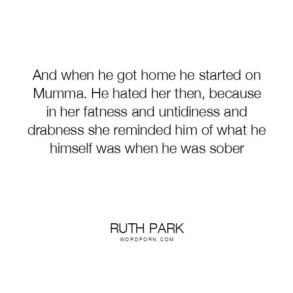 And when he got home he started on Mumma. He hated her then, because in her fatness and untidiness and drabness she reminded him of what he himself was when he was sober