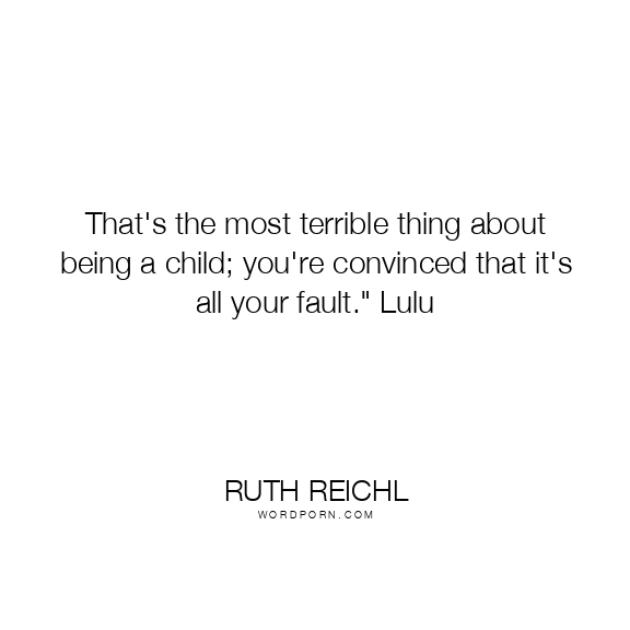 That's the most terrible thing about being a child; you're convinced that it's all your fault." Lulu