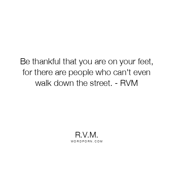 Be thankful that you are on your feet, for there are people who can't even walk down the street. - RVM